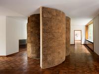 Mit der Cella, dem kleinen runden Raum in der Mitte der Wandkonstruktion, spielt der Künstler auf den inneren Hauptraum eines antiken griechischen oder römischen Tempels an. Dieser heilige Ort war der Gottheit vorbehalten und für die Öffentlichkeit nicht zugänglich. Allein mit diesem Verweis auf das Göttliche wird der Moderne scheinbar ein Spiegel vorgehalten und nach ihrer Tragfähigkeit in der heutigen Zeit gefragt: Ist das Neue Bauen immer noch die Richtschnur, der Gott, dem es zu dienen gilt? Diese Cella in der Halle von Haus Lange hält aber auch ihre ursprüngliche Funktion aufrecht. Es ist ein abgeschotteter, stiller und exklusiver Ort. Das Reet dämpft die umgebenden Geräusche, die Enge des Raumes und die Nähe zum Material intensivieren die Erfahrung des Ichs. Es entwickelt sich ein Gefühl für das, was öffentlich und was privat ist. Die Frage nach der Bedeutung für eine Trennung von öffentlicher Zone und privater Sphäre wird hier explizit gestellt — in einer Zeit, in der die Allgegenwart digitaler Medien als existentiell angesehen wird. Wer traut sich heute noch ohne JPS oder Handy in den Wald oder die Natur? So kann dieser kleine innere Raum auch als Zelle verstanden werden, als eine Zelle, die vieles wieder zurück auf den Anfang setzt und die DNA neu zu formen ansetzt.
